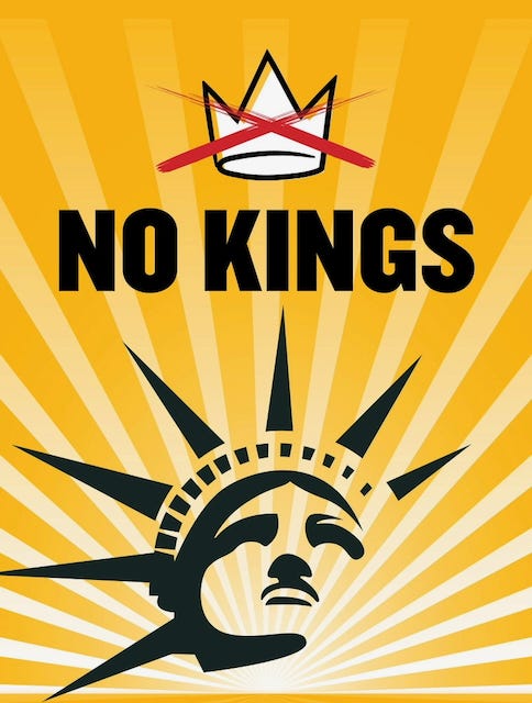 ‘There will be more mass protests in our future, but before that, there will be authoritarian overreach to defend against…and quickly. What we do will change week to week. Whatever the moment requires, we’ll adapt. Because authoritarianism doesn’t stand alone—it survives on silence, complicity, and cash flow. The No Kings Alliance is simple: make it impossible for anyone—in power, in profit, or in denial—to quietly capitulate.’ – [NoKings Alliance]