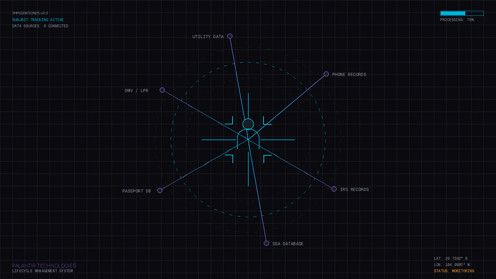 Palantir Technologies built the platform. It went live in late 2025. ICE wants 3,000 arrests a day, and ImmigrationOS is how they plan to get there. The system hoovers up data from IRS records, Social Security files, passport databases, and license plate readers. Then AI does the sorting. Flags people for removal.